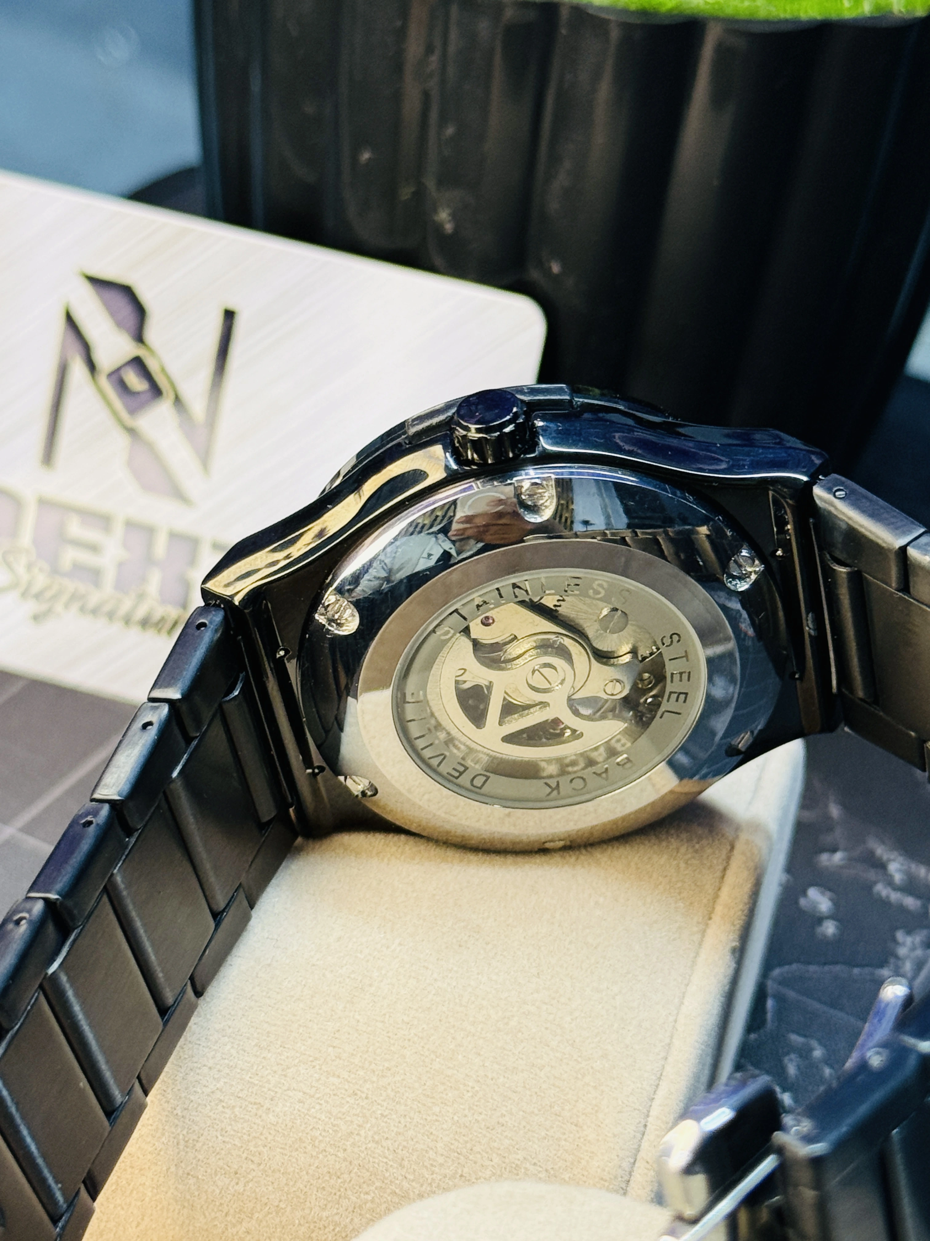 - Dial Type: Skeleton Dial (Transparent Mechanical Design)