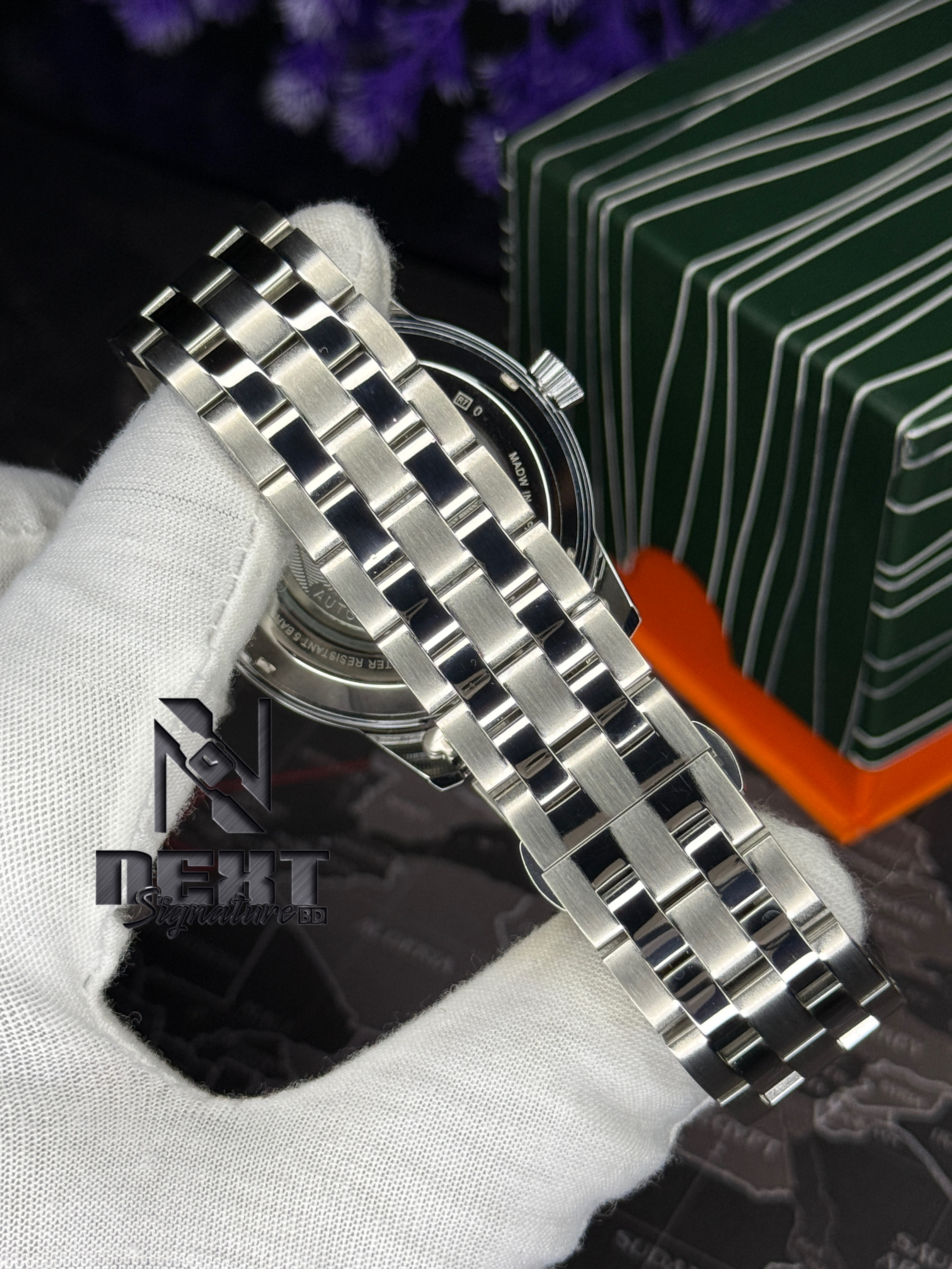 - Elegant green sunburst dial with premium finish